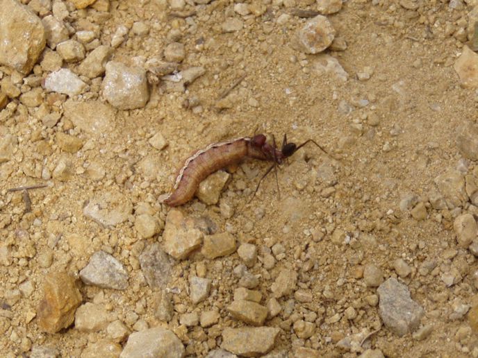 Dlouhonohý mravenec zabiják s kořistí